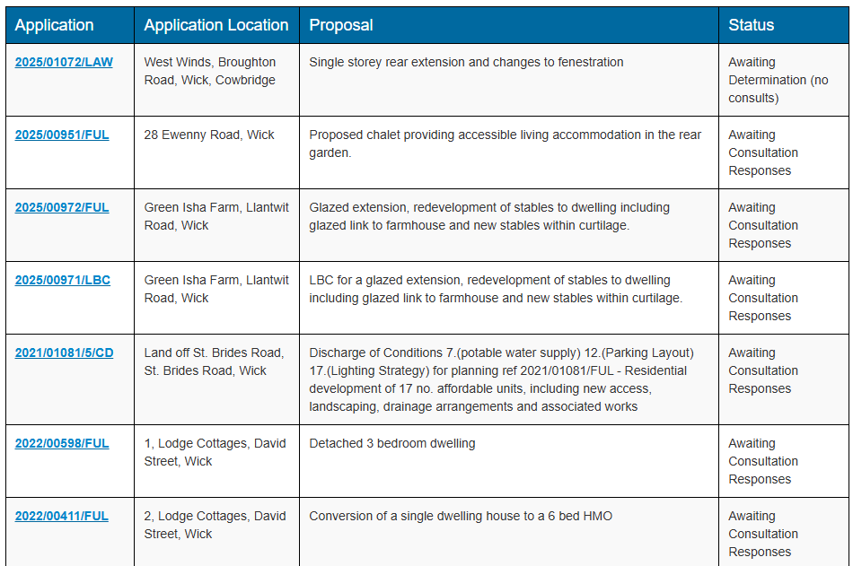 For further information on Planning Applications within the Vale of Glamorgan visit: